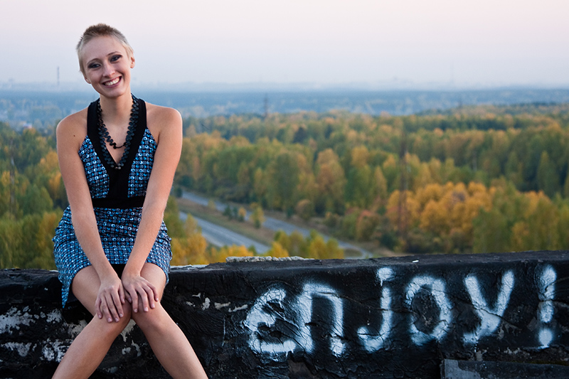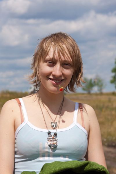 Ключевые слова: девушка, улыбка, солнце, зонт, мыльные пузыри