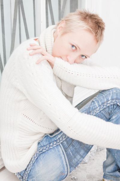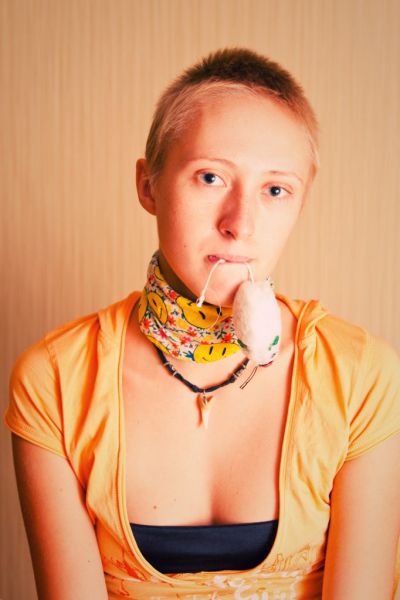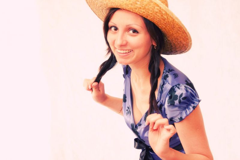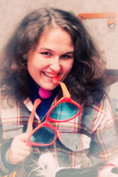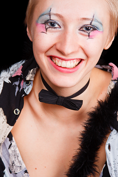 Ключевые слова: девушка, улыбка, арлекин, студия, хэллоуин